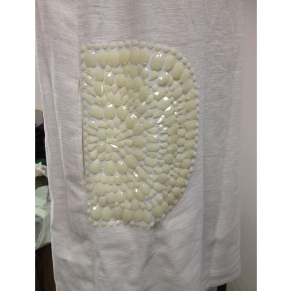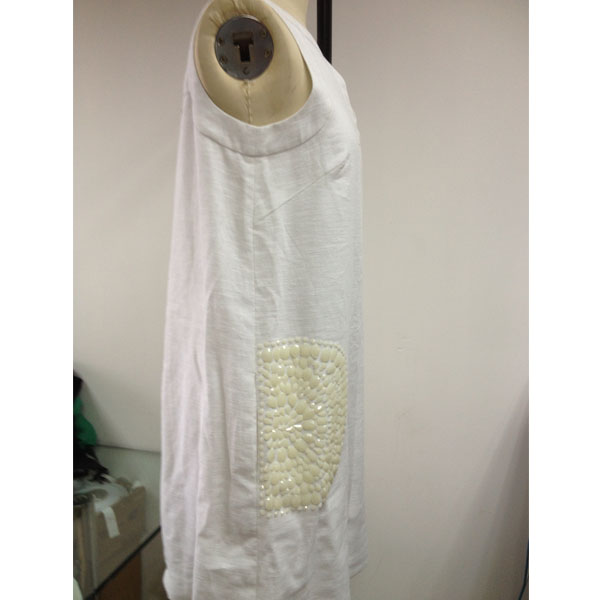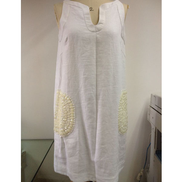 產(chǎn)品號:T003-2麻布訂珠連衣裙服裝加工